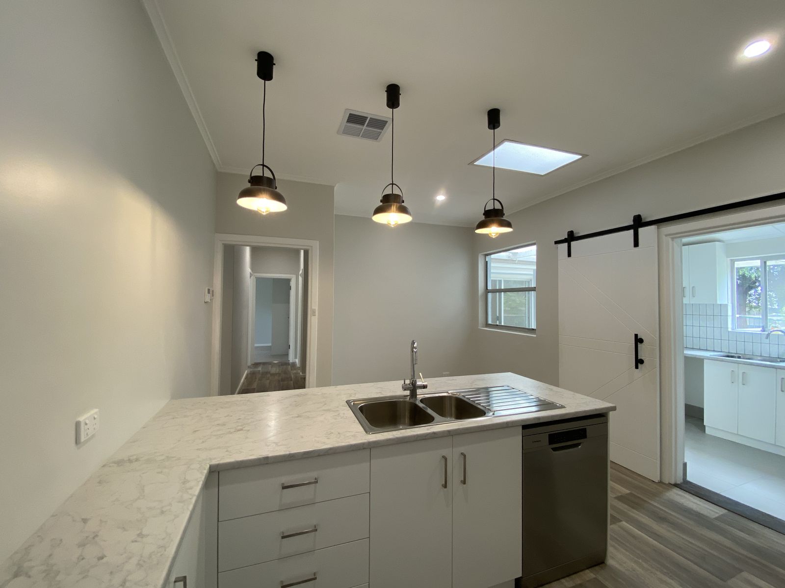 * Kitchen offers a dishwasher, double sink and lots of cupboards